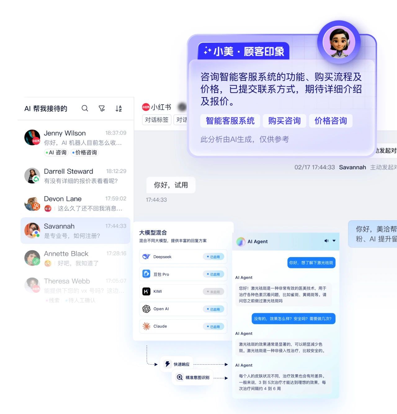 客户对话窗口新增「小美·顾客印象」卡片,卡片包含AI智能总结的「客户画像」及「客户行为标签」