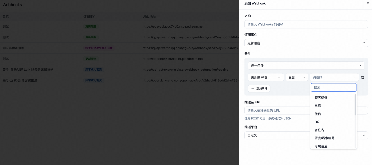 Webhook实时推送对话状态、留资情况,提升线索转化效率,AI工作表现一目了然