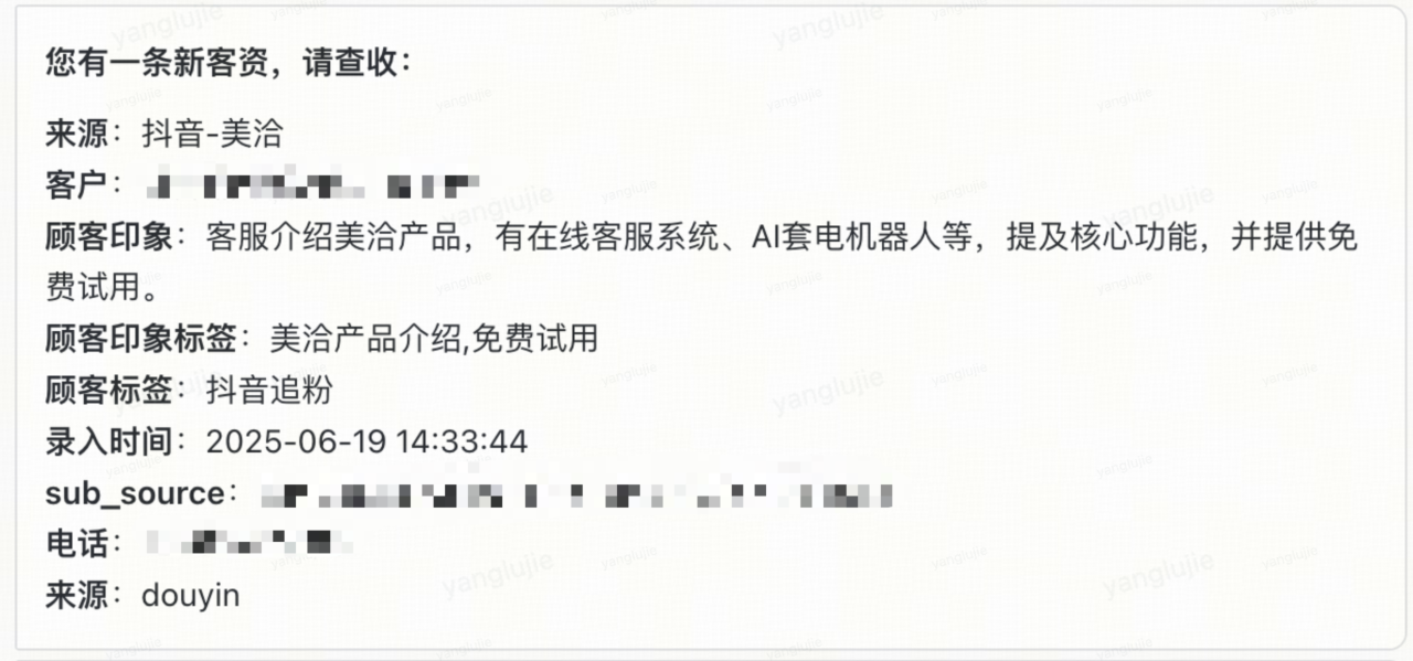 订阅后可以收到客户画像相关内容。包括小美AI总结的顾客印象卡片。让客资同步内容更详尽,深化客户洞察,有效提升开口转化。