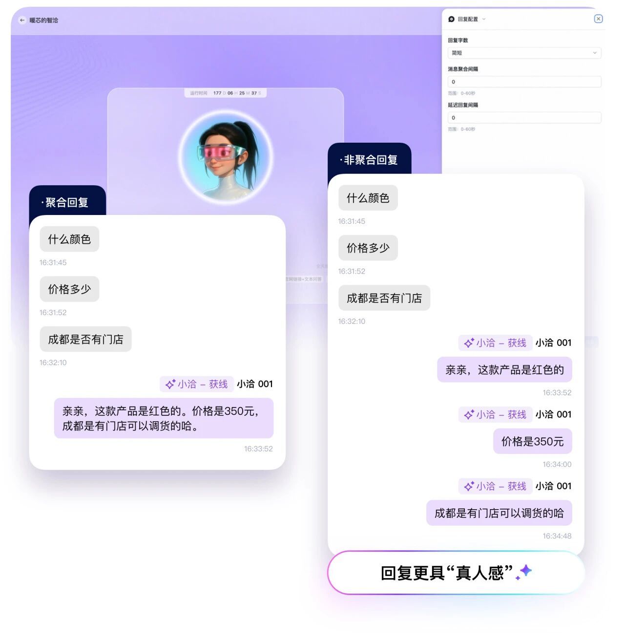 - 即时自动回复: AI 机器人对高频问题(如价格、库存、链接)进行即时、标准的自动回复。