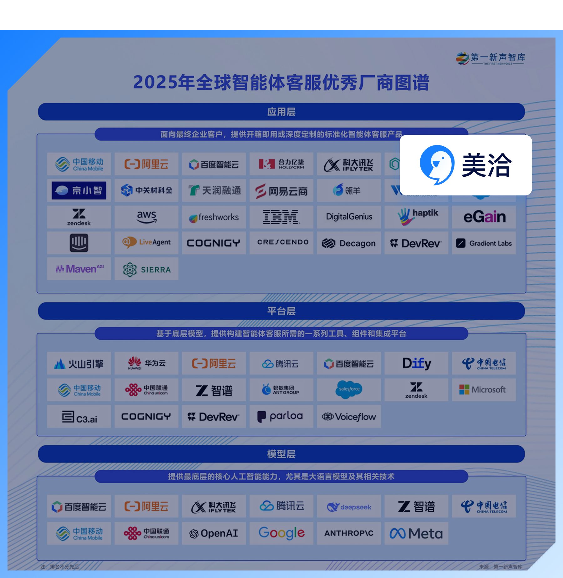 2025年9月,第一新声智库正式启动第19轮AI系列研究——《2025年中国智能体客服市场发展研究报告》。在近3个月的时间里,通过调研多位智能体客服行业一线专家,并结合大量专家的定性研究内容,正式完成《2025年中国智能体客服市场发展研究报告》。